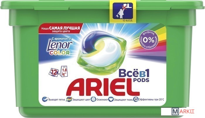 Markit » Средства для стирки и ухода за бельем » Капсулы для стирки Ariel Все в 1 Pods Touch Of Lenor Fresh Color (12 шт)