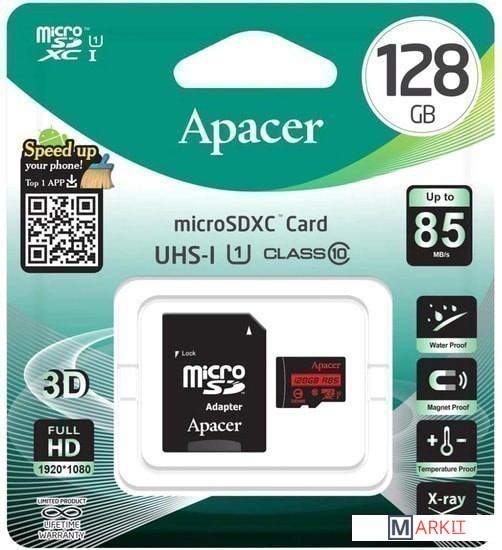 Markit » Карты памяти » Карта памяти Apacer microSDXC AP128GMCSX10U5-R 128GB (с адаптером)