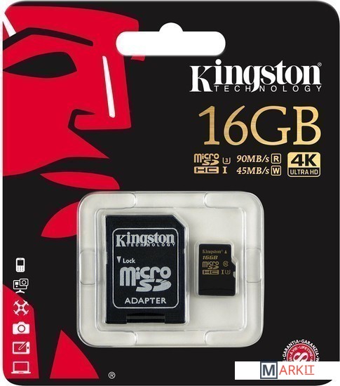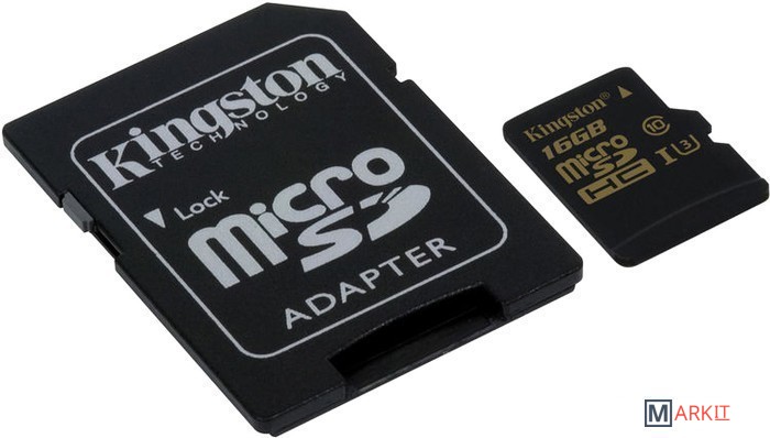 Markit » Карты памяти » Карта памяти Kingston Gold microSDHC Class U3 UHS-I 16GB +адаптер [SDCG/16GB]