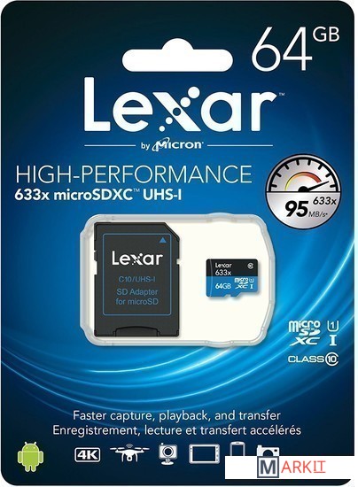 Markit » Карты памяти » Карта памяти Lexar 633x Class 10 64GB + адаптер