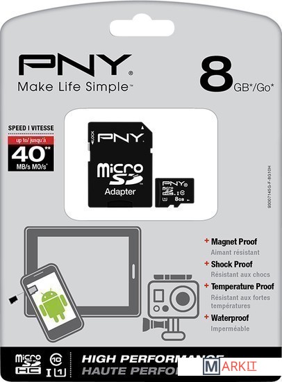 Markit » Карты памяти » Карта памяти PNY microSDHC High Performance (Class 10) 8GB (P-SDU8G10-GE)