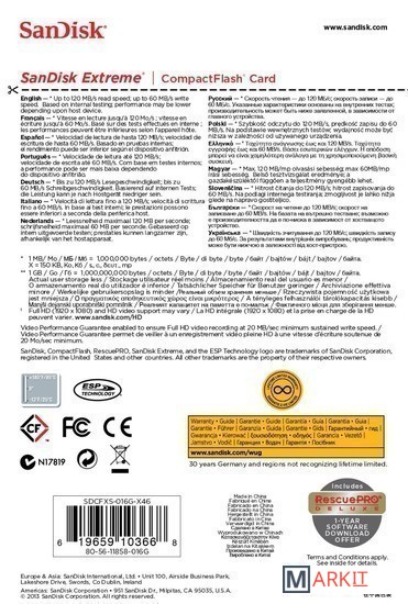 Markit » Карты памяти » Карта памяти SanDisk Extreme CompactFlash 16GB (SDCFXS-016G-X46)