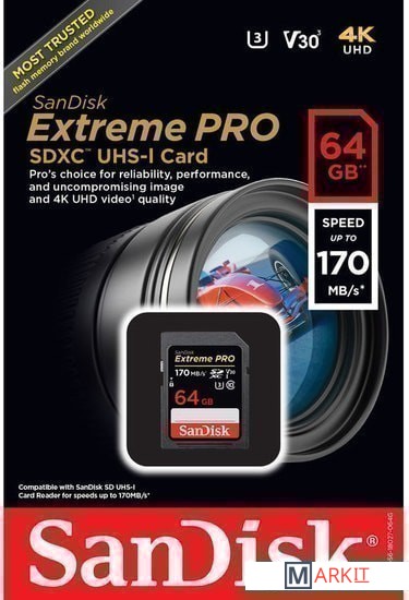 Markit » Карты памяти » Карта памяти SanDisk Extreme PRO SDXC SDSDXXY-064G-GN4IN 64GB
