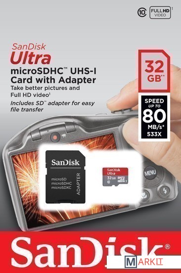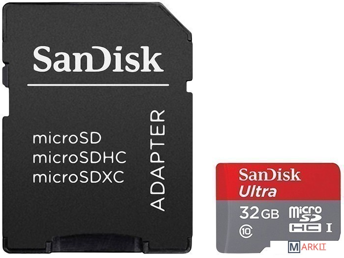 Markit » Карты памяти » Карта памяти SanDisk Ultra microSDHC (Class 10) + адаптер 32GB (SDSQUNC-032G-GN6IA)
