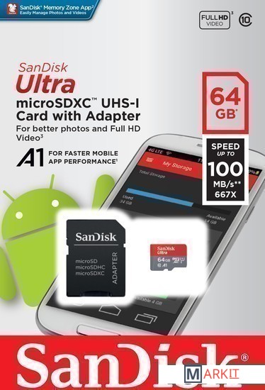 Markit » Карты памяти » Карта памяти SanDisk Ultra SDSQUAR-064G-GN6MA microSDXC 64GB (с адаптером)