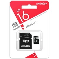 Карта памяти SmartBuy microSDHC SB16GBSDCL10-01LE 16GB (с адаптером) Код: 95686
