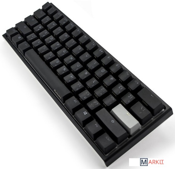 RGB подсветкаПрисутствует множество различных режимов, регулировка цвета осуществляется через палитру или отдельную настройку красного, зеленого, синего цветов. Также можно создать кастомный режим статичной подсветки.ПрограммируемаяDucky Macro 2.0 дает возможность создавать макросы. Можно создать свои мультимедиа, функциональные макросы и многое другое.Регулируемые ножкиДвойные регулируемые ножки предоставляют целых два угла наклона клавиатуры для более комфортной печати, а их прорезиненный низ не даст клавиатуре сдвинуться с местаРусифицированные PBT double-shot клавишиИзготовлены из высокопрочного пластика PBT с применением double-shot технологии, что гарантирует их долговечность и надежность в эксплуатации.DIP-переключателиДают возможность поменять расположение клавиши FN и переключиться между NKRO и 6KRO.Функция Full N-key Rollover по USB (NKRO)Позволяет нажимать одновременно неограниченное количество клавиш. Для печати идеально подойдет как 6KRO, так и NKRO независимо от вашей скорости. Для игр NKRO будет плюсом и неважно, нажимаете ли вы больше 6 кнопок или нет, поскольку, играя в любую игру, вы можете случайно нажать пару лишних клавиш и из-за этого клавиатура имеет шанс не среагировать на нажатие, которые вы хотели совершить изначально. Также присутствует возможность переключения на 6KRO. Информация о совместимости с Mac OS: функции клавиш Launchpad, Mission Control и регулировки яркости экрана отсутствуют. Управление музыкой недоступно по умолчанию (за исключением регулировки громкости), однако вы можете назначить действия управления музыкой на любые доступные для этого клавиши (например, FN + Z, X, C, V, B), следуя данной инструкции. Поменять местами клавиши-модификаторы можно в системных настройках Mac OS.