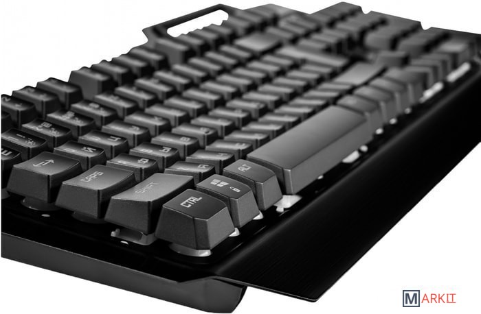 Клавиатура с классическая раскладкой и стандартными клавишами создана для удобства при долгих играх. Металлическая пластина, формат скелетон и яркая настраиваемая подсветка создаст индивидуальность и позволит настроить все устройства в едином стиле. Программируемые кнопки и система анти-гостинг, позволяющая регистрировать все одновременные нажатия до 19 клавиш, придадут преимущества в игре. Дополнительной фишкой станет подставка для телефона, специально для тех, кто не хочет пропустить что-то важное, погружаясь в игру.