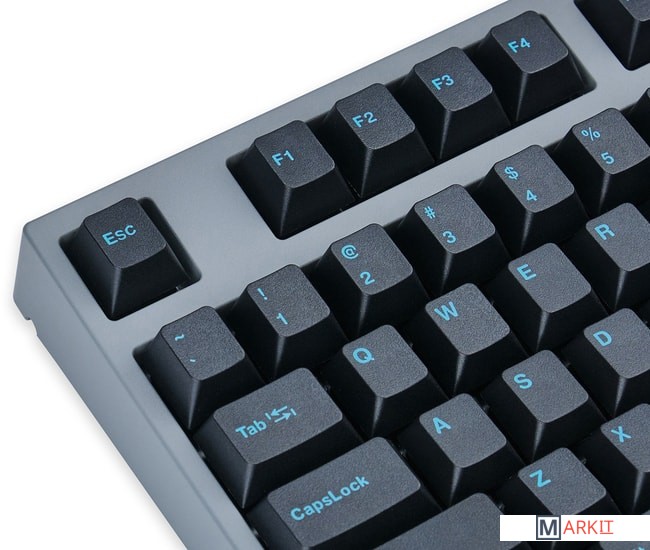 КЛАВИАТУРА БЕЗ КИРИЛЛИЦЫТип: кликающийСила нажатия: 60 грамм (несмотря на вес, средние)Длина пути: 4 мм (2.2 мм до срабатывания)Данная модель имеет темную цветовую схему, расцветка обязательно понравится фанатам классики. Клавиатура собрана добротно и монолитно, а сочетание высококачественных double-shot PBT клавиш с переключателями Cherry MX и звукопоглощающей подложкой позволяет сделать печать на клавиатуре максимально тихой (насколько это возможно для механики). Mini-USB порт спрятан в центре под корпусом, а на самой клавиатуре имеются центральная и две боковые канавки под кабель.Клавиатура поддерживает сочетание клавиш для регулировки громкости и управления музыкой, также имеется возможность переключения между 6KRO и NKRO.DIP-переключатели на задней панелиДают возможность поменять местами функции кнопок Ctrl и Caps Lock, Windows и Alt, Windows и Fn или отключить Windows.Звукопоглощающая подложкаПоглощает звуки при нажатии, делая процесс печати более тихим по сравнению с обычными механическими клавиатурами.Низкопрофильные клавиши Step-Sculpture2Данные клавиши заметно ниже и имеют оптимальный угол наклона, из-за чего, по отзывам, печатать приятнее и комфортнее, чем на более высоких клавишах.Клавиатура совместима с Mac OSFN-слой работает (кроме клавиш F6, F8, F9), а поменять местами клавиши-модификаторы можно в системных настройках. Проверено с MAC OS 10.13Функция Full N-key Rollover по USB (NKRO)Позволяет нажимать одновременно неограниченное количество клавиш. Для печати идеально подойдет как 6KRO, так и NKRO, независимо от вашей скорости. Для игр NKRO будет плюсом и неважно, нажимаете ли вы больше 6 кнопок или нет, поскольку, играя в любую игру, вы можете случайно нажать пару лишних клавиш и из-за этого клавиатура имеет шанс не среагировать на нажатие, которое вы хотели совершить изначально. Имеется возможность переключения между NKRO и 6KRO через FN сочетания.