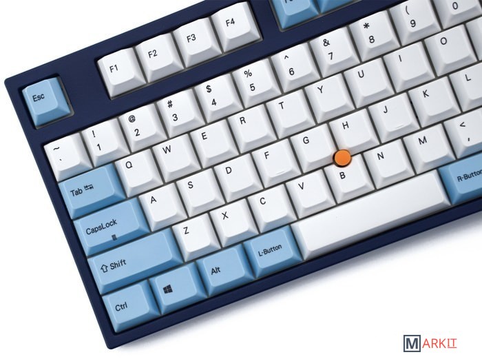 Тип: тактильный Сила нажатия: 55 грамм (средние)Длина пути: 4 мм (2 мм до срабатывания)Данная модель представлена в тёмно-синем окрасе с белыми и светло-голубыми клавишами, расцветка выглядит свежо и воздушно. Клавиатура собрана добротно и монолитно, а сочетание высококачественных PBT клавиш с переключателями Cherry MX и звукопоглощающей подложки позволяет сделать печать на клавиатуре максимально тихой (насколько это возможно для механики). Mini-USB порт спрятан в центре под корпусом, а на самой клавиатуре имеются центральная и две боковые канавки под кабель.Уникальная для клавиатур Leopold фишка: теперь, если у вас нет под рукой мыши, клавиатура сможет взять её обязанности на себя. Указательный стик позволяет перемещать курсор, а для левой и правой кнопок мыши с обеих сторон пробела расположились специальные клавиши.Клавиатура поддерживает сочетание клавиш для регулировки громкости и управления музыкой, также имеется возможность переключения между 6KRO и NKRO.DIP-переключатели на задней панелиДают возможность поменять местами функции кнопок Ctrl и Caps Lock, Windows и Alt, Windows и Fn или отключить Windows.Звукопоглощающая подложкаПоглощает звуки при нажатии, делая процесс печати более тихим по сравнению с обычными механическими клавиатурами.Низкопрофильные клавиши Step-Sculpture2Данные клавиши заметно ниже и имеют оптимальный угол наклона, из-за чего, по отзывам, печатать приятнее и комфортнее, чем на более высоких клавишах.Клавиатура совместима с Mac OSFN-слой работает (кроме клавиш F6, F8, F9), а поменять местами клавиши-модификаторы можно в системных настройках. Проверено с MAC OS 10.13Функция Full N-key Rollover по USB (NKRO)Позволяет нажимать одновременно неограниченное количество клавиш. Для печати идеально подойдет как 6KRO, так и NKRO, независимо от вашей скорости. Для игр NKRO будет плюсом и неважно, нажимаете ли вы больше 6 кнопок или нет, поскольку, играя в любую игру, вы можете случайно нажать пару лишних клавиш и из-за этого клавиатура имеет шанс не среагировать на нажатие, которое вы хотели совершить изначально. Имеется возможность переключения между NKRO и 6KRO через FN сочетания.
