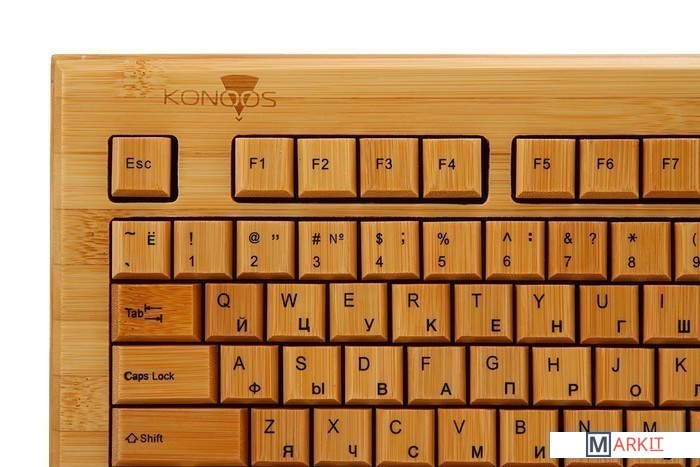 Беспроводные клавиатура и мышь из натурального природного материала — бамбука.