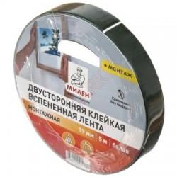 Markit » Товары для упаковки и маркировки » Клейкие ленты » Клейкая лента монтажная двусторонняя «Милен», 19 мм x 5 м, 1200 мкм, белая вспененная основа