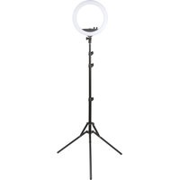 Комплект из кольцевой светодиодной (LED) лампы 13'' 24Вт 240LED 3000Лм и штатива 90/167 см. Плавная регулировка яркости лампы с матовым рассеивателем. Регулировка цветовой температуры. Регулировка наклона лампы с возможностью фиксации в нужном положении. Универсальное крепление для телефона. Универсальный разъем USB-A, 5В позволяет подключить к лампе, помимо сети питания 220В, ещё и внешний аккумулятор. Удобный и практичный чехол.