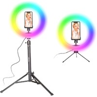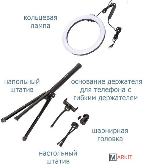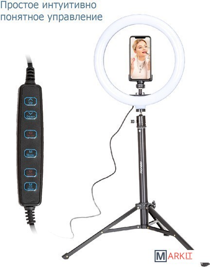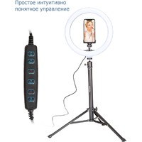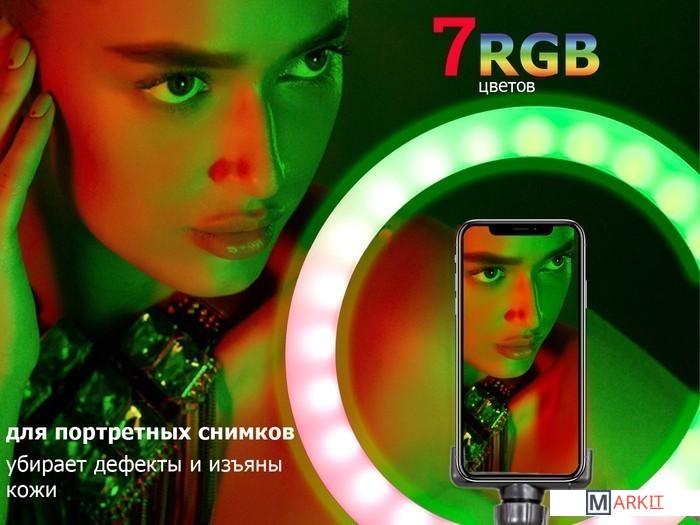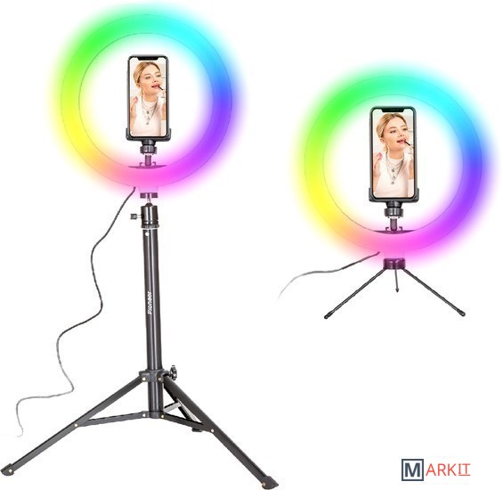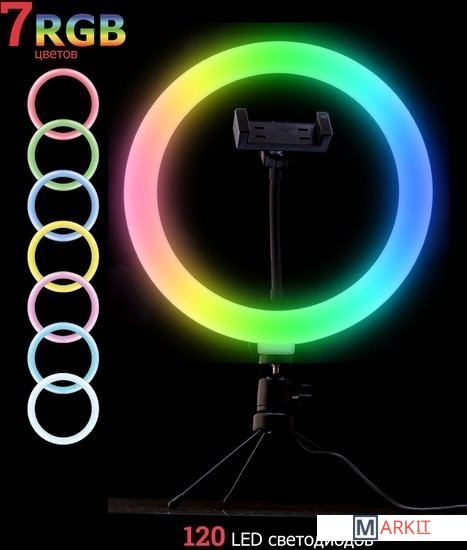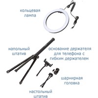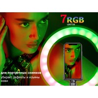 Кольцевая светодиодная RGB лампа Pioneer служит основным или дополнительным источником освещения, равномерно рассеивает свет и призвана скрыть блики, лишние тени и изъяны при при фото- или видеосъемке, потоковой видеотрансляции, при съемке селфи, видео блогов, видеозаписей, или макросъемки и т. д. Осветитель Pioneer поможет добиться правильного, яркого, равномерного освещения при любой съемке.Кольцевая светодиодная лампа Pioneer может использоваться также в качестве источника света для макияжа или маникюра, в качестве настольной лампы, торшера или ночника. Расположение источника света вокруг смартфона помогает добиться правильного, яркого, равномерного освещения при съемке и минимизирует тени.Лампа питается от стандартного порта USB. Ей не требуется встроенной батареи или специализированного адаптера питания. Она будет одинаково хорошо работать с большинством устройств, имеющих порт USB, таких как ноутбук, ПК, пауэрбанк, зарядное устройство USB и т. д.Яркость светодиодного источника света регулируется в широких пределах. Три режима цветовой температуры – теплый белый свет, дневной (естественный) свет и холодный белый свет – позволяют добиться необходимых вам визуальных эффектов и обеспечивают совместимость со светочувствительными материалами с разной спектральной чувствительностью.Гибкий держатель для смартфона и держатель лампы с шарнирной головкой дают свободу в выборе ракурса съемки. Входящий в комплект настольный штатив позволяет устанавливать лампу на столе или других горизонтальных поверхностях.В комплект поставки входит два штатива: настольный и напольный.