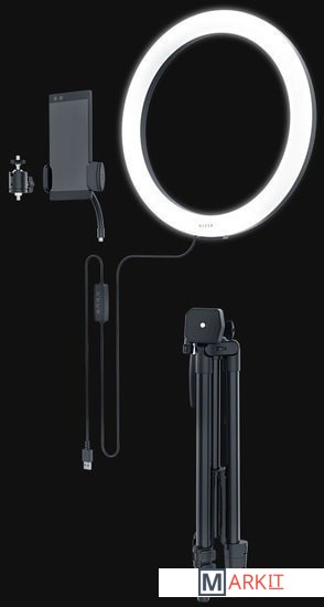 | Комплектация | 1 х кольцевой свет с прикрепленным кабелем и пультом управления1 х штатив1 х держатель для мобильного телефона1 х крепление на шаровой головке |