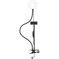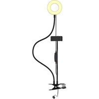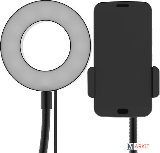 Кольцевая лампа RRL-091, предназначена для равномерного освещения при фото или видеосъемке. Регулируемая яркость и цветовая температура позволяют подобрать лучшие условия для съемки. Кольцевая лампа оборудована держателем для мобильного телефона на гнущейся ножке и позволяет зафиксировать его в любом положении.