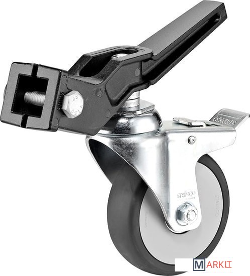 Комплект из трех колес с тормозами диаметром 100 мм, подходят для стоек с ногами квадратного сечения 20x20 мм или 25x25 мм.