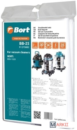 Markit » Аксессуары для пылесосов, пароочистителей » Комплект одноразовых мешков Bort BB-25