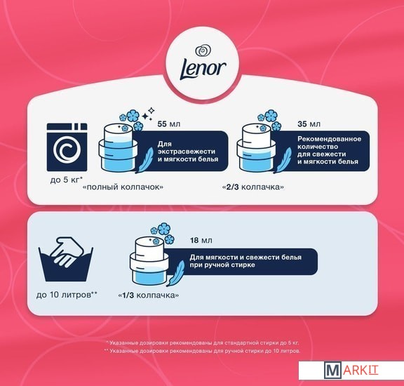Кондиционер для белья LENOR Vitality Прохлада океана - коллекция Lenor Vitality позволяет превратить повседневные заботы в чувственное наслаждение. Утонченные ароматы в духе последних тенденций воздействуют на разные органы чувств. Кондиционер для белья питает, обогащает и поддерживает новизну ткани с первого дня, а технология Anti-Age3 с доказанной эффективностью защищает ткань от потери формы, выцветания и образования катышков, чтобы одежда дольше сохраняла красивый вид и потрясающий аромат. Благодаря насыщенному сочетанию восхитительных фруктовых и цветочных нот Lenor Садовые Цветы соблазнит вас, утолив вашу жажду к экстравагантности и страсть к жизни. Этот кондиционер придаст вашей одежде постепенно раскрывающийся аромат с роскошными нотами жасмина и фрезии. Одежда меньше мнется, проще гладится, быстрее высыхает и меньше электризуется.
