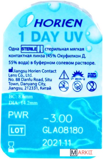 Markit » Контактные линзы » Контактные линзы Horien 1 Day UV -3.5 дптр 8.6 мм