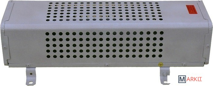 Электрообогреватели представляют собой кожух, внутри которого расположены трубчатые электронагреватели (ТЭН). Кожух выполнен из листовой перфорированной стали, закрыт снизу дном, а с торцевых сторон – крышками.На объекте электрообогреватель устанавливается крепежным соединением.Подвод питания осуществляется через отверстие в крышке со стороны токоведущих шпилек, либо через просечки в корпусе.