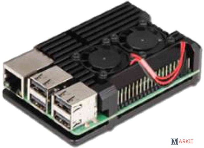 Корпус для микрокомпьютера Raspberry Pi. Открытая конструкция Open-Frame, Активное охлаждениеСовместимость с одноплатными микрокомпьютерами Raspberry PI 4B. Состоит из двух частей, крепящихся снизу и сверху на плате микрокомпьютера. Два предустановленных вентилятора