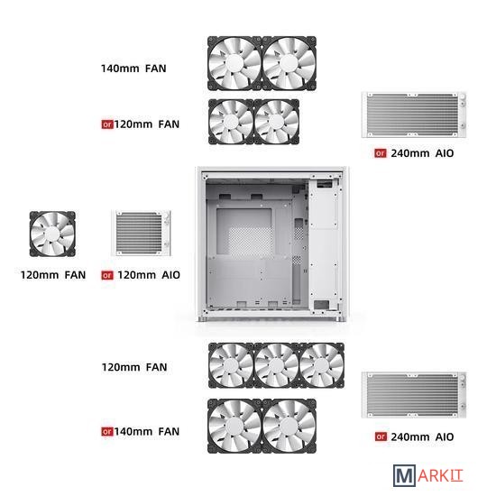 сверху 120mm*2 or 140mm*2сзади 120*1mmснизу 120mm*3 or 140mm*2 |