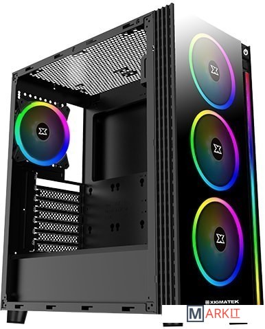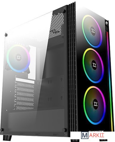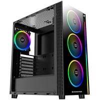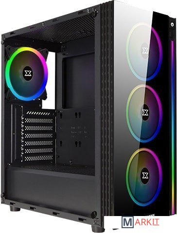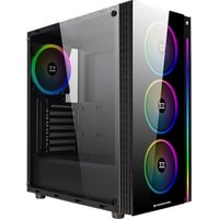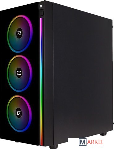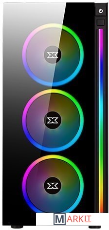 На передней панели располагается вертикальная светодиодная полоса RGB, идущая вдоль правой стороны. В комплект поставки входит четыре 120-мм RGB LED вентилятора, три из них предварительно установлены вдоль передних воздухозаборников, а один - в качестве единственного заднего выпускного отверстия корпуса. 4-канальный RGB LED контроллер оснащён пультом дистанционного управления, который позволяет переключаться между предустановками и переключать индивидуальное освещение. Тот же контроллер работает как 4-канальный PWM-контроллер.