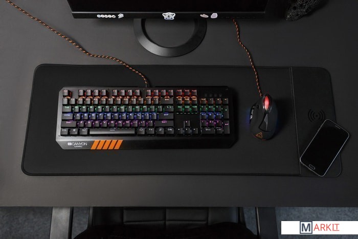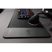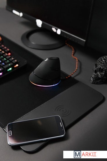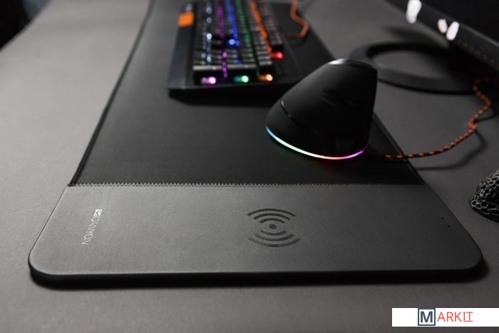 Главной особенностью данного коврика является наличие беспроводной зарядки стандарта Qi. Выходная мощность зарядки составляет 5 Вт.Не следует помещать в область подзарядки металлические или металлсодержащие предметы, например монеты или кредитные карты.
