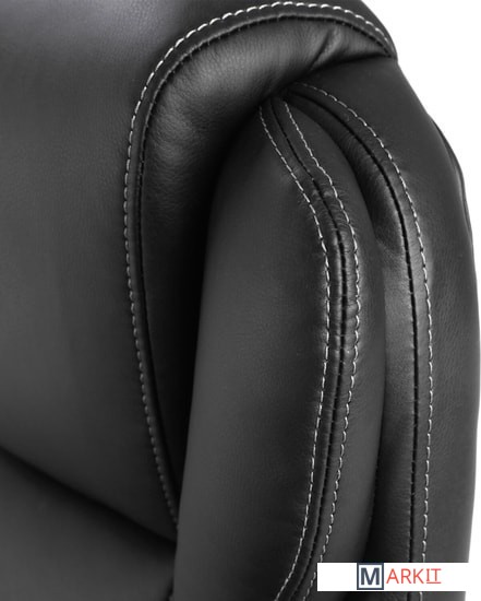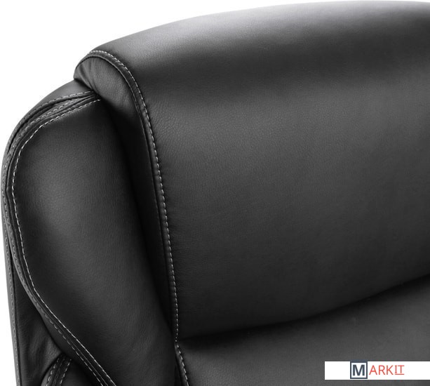 Высокая спинка с широким мягким подголовником и боковой поддержкой выводят эргономику кресла на новый уровень.Обивка выполнена из экокожи высокого качества - современного материала на хлопковой основе. Благодаря тканой основе и пористому полиуретану экокожа отлично пропускает воздух, что положительным образом сказывается на комфорте во время эксплуатации. Материал износоустойчив - кресло сохранит привлекательный внешний вид в течение длительного времени.Наличие перфорации в центральной части кресла обеспечивает дополнительную циркуляцию воздуха.Помимо плотной набивки в сиденье кресла встроен пружинный блок - конструкция из стальных независимых пружин, предназначенная для лучшей амортизации. Благодаря пружинным блокам мебель «не проседает» в процессе эксплуатации, комфортна и функциональна. Также в набивке использован поролон высокой плотности - это обеспечивает оптимальную поддержку пользователя и препятствует "проминанию" сиденья в ходе эксплуатации.Прочные пластиковые подлокотники имеют мягкие накладки.Надежный механизм качания "Top Gun" обеспечивает хорошую поддержку спины и поясницы за счет возможности свободного качания с фиксацией в одном рабочем положении и регулировку угла наклона под вес сидящего.