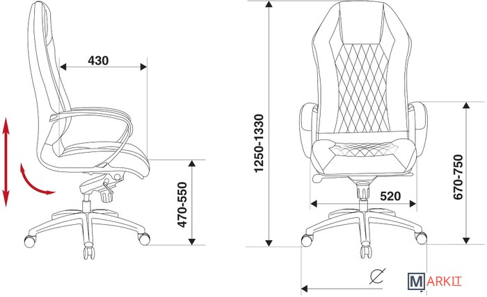 | Высота кресла | 125 — 133 см |
