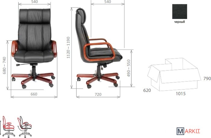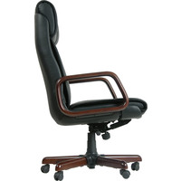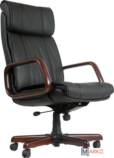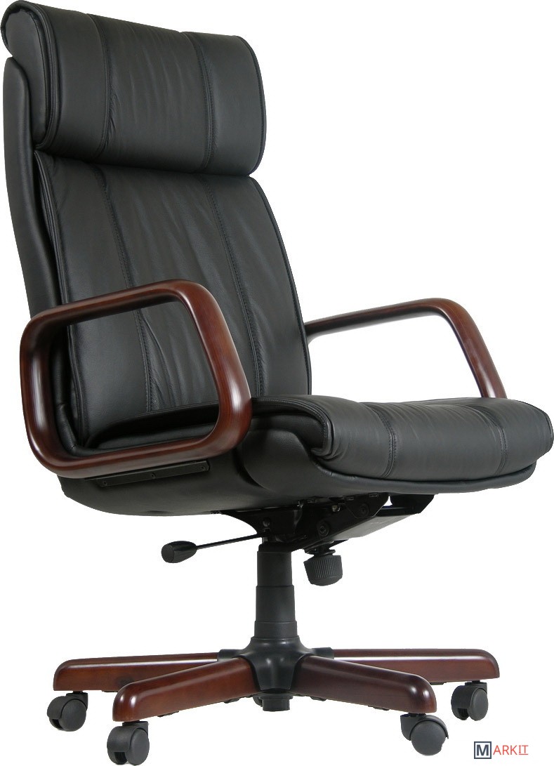Офисное кресло руководителя черного цвета. В сиденье, спинке кресла используется высококачественный наполнитель. Обивка кресла выполнена из натуральной кожи.