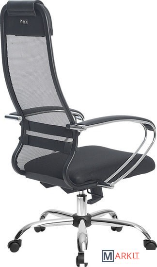 - высокая замкнутая сверху спинка кресла с мягким накладным подголовником;- мягкое объемное сиденье;- стальной каркас спинки, сиденья и подлокотников с износостойким полимерным покрытием (зеркальный хром);- обивка спинки – ткань-сетка;- обивка сиденья – износостойкая ткань обивочная сетчатая.
