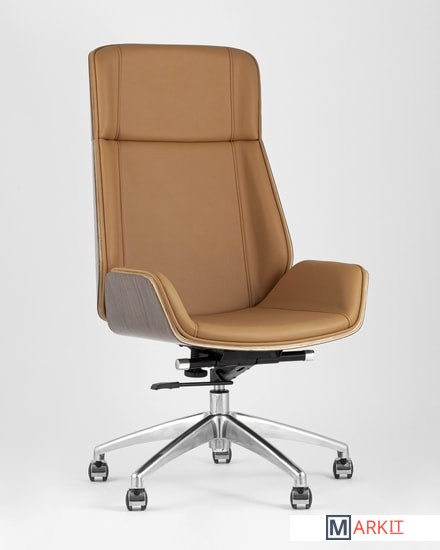 Современное и функциональное кресло для руководителя.Обивка выполнена из качественной экокожи. Комфорта добавляют удобные подлокотники, а благодаря механизму регулировки высоты и качания можно выбрать наиболее удобное положение. Дизайнерская форма добавит помещению уюта и стиля, а вставки, декорированные под натуральное дерево, выглядят очень изысканно.Высокая спинка оказывает качественную поддержку и позволяет провести в кресле долгое время без усталости. Каркас изготовлен из металла и позволяет выдержать нагрузку до 150 кг.