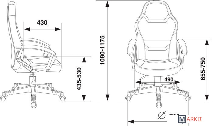 Высота кресла 108 — 117.5 см