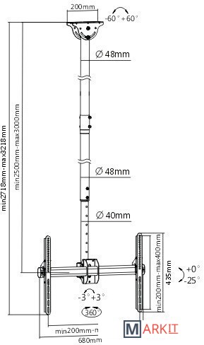 | Расстояние от стены (потолка) | 2 500 — 3 000 мм |
