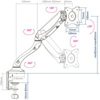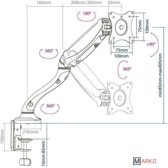 | Функциональные особенности | поворотный, с регулировкой высоты, кабель-канал, струбцинное крепление |