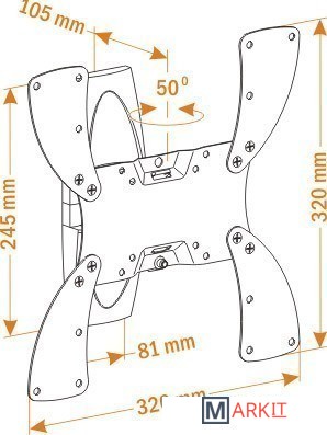 | Угол поворота (без ТВ) | 50 ° |