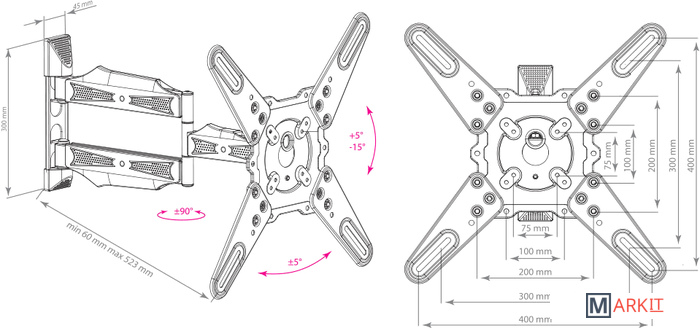 | Расстояние от стены (потолка) | 60 — 523 мм |