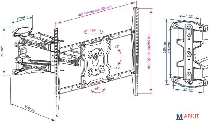 | Расстояние от стены (потолка) | 50 — 460 мм |