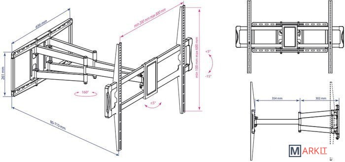 | Расстояние от стены (потолка) | 80 — 710 мм |