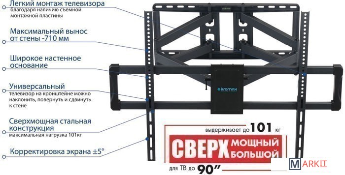 | Совместимая диагональ экрана | 40 — 90 " |
