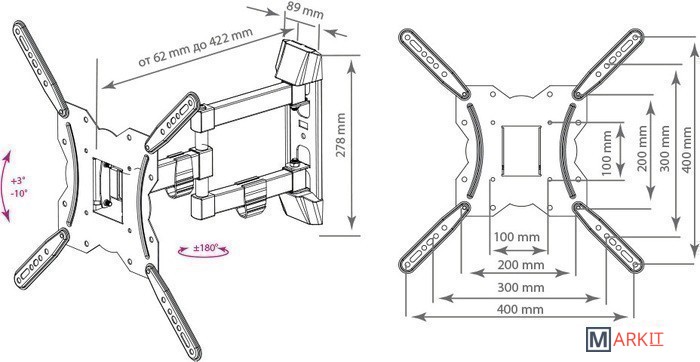 | Расстояние от стены (потолка) | 62 — 422 мм |