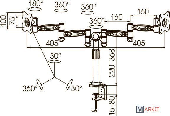 | Функциональные особенности | поворотный, с регулировкой высоты, кабель-канал, струбцинное крепление / поворотный, с регулировкой высоты, кабель-канал, струбцинное крепление, для 2 мониторов |