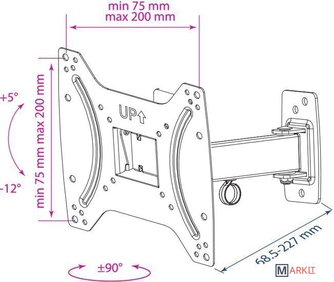 | Расстояние от стены (потолка) | 68.5 — 227 мм |