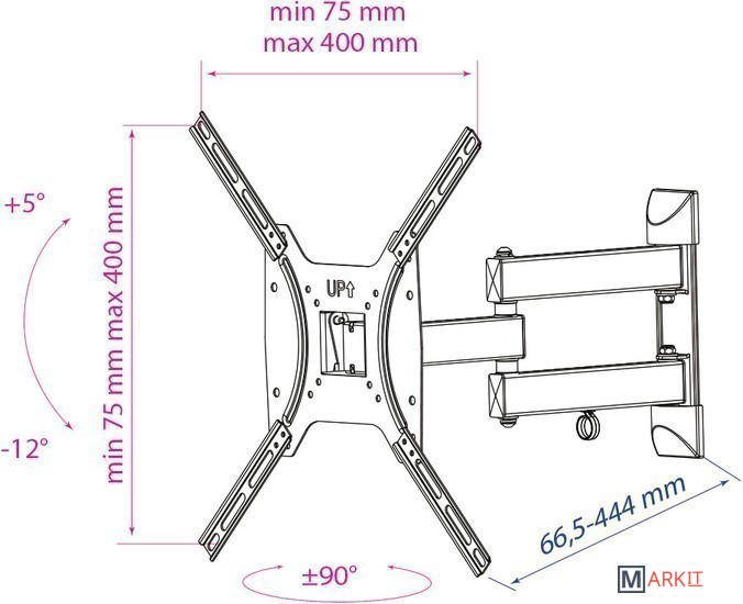 | Расстояние от стены (потолка) | 66.5 — 444 мм |