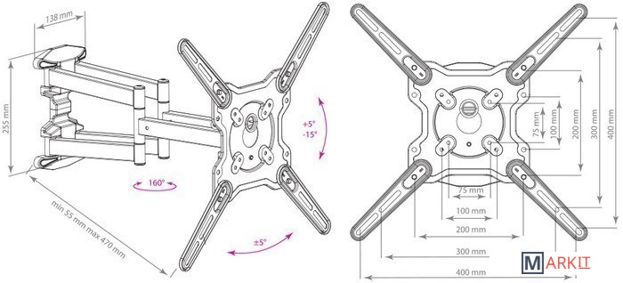 | Расстояние от стены (потолка) | 55 — 470 мм |