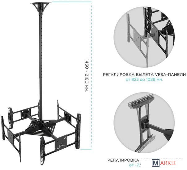 | Количество устанавливаемых мониторов | 4 монитора |