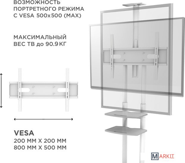 | Совместимость с креплением VESA | 200x200, 200x300, 300x200, 300x300, 400x300, 400x400, 600x400, 600x500, 600х600, 670x400, 700x400, 700x500, 800x200, 800x400, 800x500 |