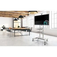 Мобильная стойка ONKRON TS1881 подойдёт для ЖК, Плазменных и LED телевизоров и панелей с диагональю от 55"-80" и впишется в любой интерьер.Если Вы ищите стенд с колёсами для большого, или не очень, телевизора, но при этом необходимо разместить всё на достаточно ограниченном пространстве, допустим в конференц-зал, переговорную, в свой кабинет, в выставочный зал, ресторан или кафе, то Мобильная стойка ONKRON TS1881 одно из самых лучших решений. Выполнена из сверхпрочной стали, на неё нанесено качественное чёрное порошковое покрытие, что придаёт ей ещё большей превлекательности во внешнем виде. А две надёжные вертикальные трубы, дополнительно усиленные по центру и регулирующиеся по высоте от 1350 мм до 1650 мм, позволят Вам установить на стойку телевизор весом до 90.9кг, и диагональю до 80" и без особых усилий подкорректировать его положение по вертикали.
